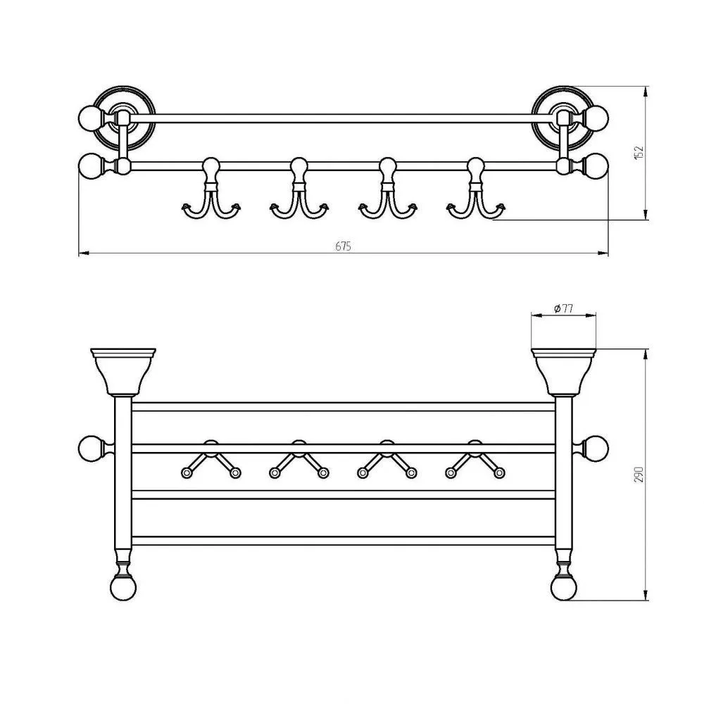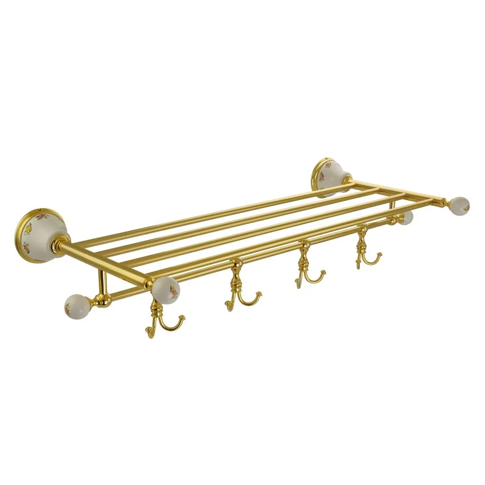 17702 MIGLIORE PROVANCE Полка-решетка для полотенец с 4-мя крючками, L67 см, кероамика с декором/золото