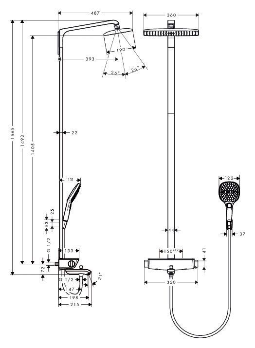 Raindance Select E 360 Showerpipe для ванны, ½’