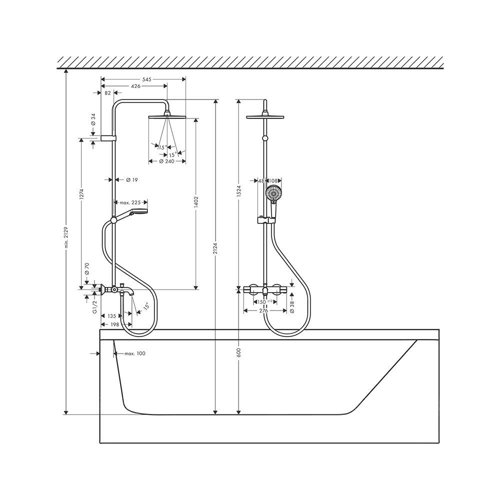 - Расход воды для ручного душа при давлении 3 бар: 15,2 л/мин.