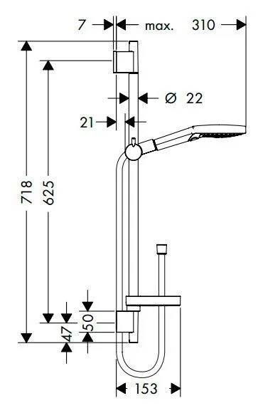 - держатель ручного душа регулируется в пределах 90°, поворачивается вправо и влево, перемещается вверх и вниз