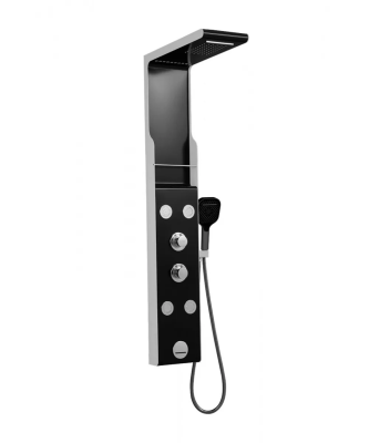 Душевая панель Vieir VR27-C Черный – стильное и функциональное решение для вашей ванной комнаты. Изготовлена из высококачественной нержавеющей стали, панель имеет матовое покрытие и черный цвет, что придает ей элегантный и современный вид.