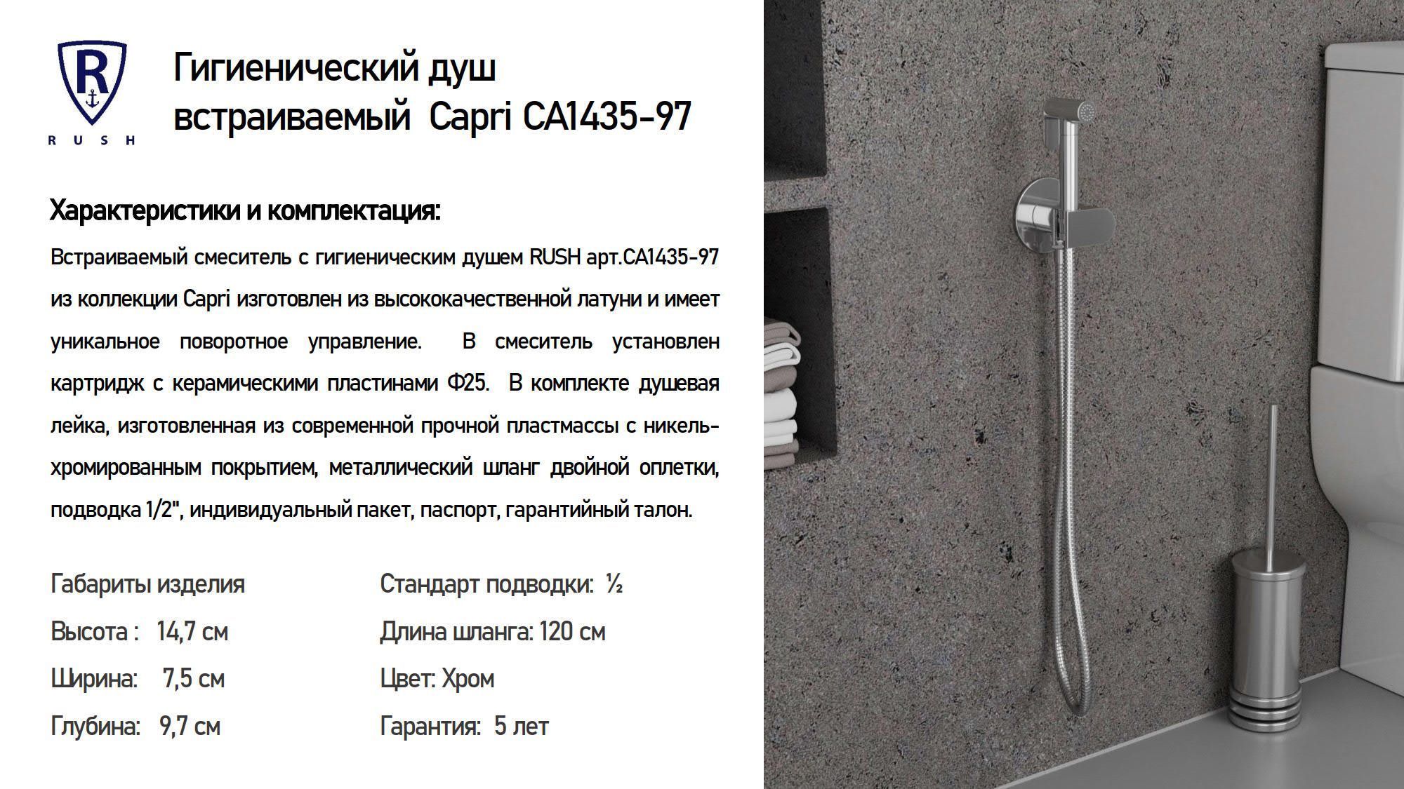 В интернет-магазине HITsant вы сможете купить "Гигиенический душ встраиваемый RUSH Capri (CA1435-97)" по самой выгодной цене в Москве и России. Качество товара подтверждено сертификатом качества и гарантией от производителя. Доставка "Гигиенический душ встраиваемый RUSH Capri (CA1435-97)" осуществляется в кратчайшие сроки с момента оформления заказа. Все интересующие вопросы вы можете задать по телефону либо написав нам на почту. Наши специалисты с радостью ответят на все Ваши вопросы.