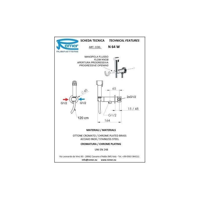 Линии Minimal была создана дизайнером Кристианом Мапелли (Cristian Mapelli) и воплощёна в реальных изделиях в производственных цехах фирмы Ремер (Remer), расположенных в провинции Милан (Provincia di Milano). Прекрасно подойдет для модернизации или ремонта практически любого помещения. Корпус смесителя полностью изготовлен из латуни. Гигиенический душ. Гарантия 5 лет. При каждом использовании, после закрытия крана, нажмите на клавишу душ-пистолета для сброса остаточного давления. Сделано в Италии.