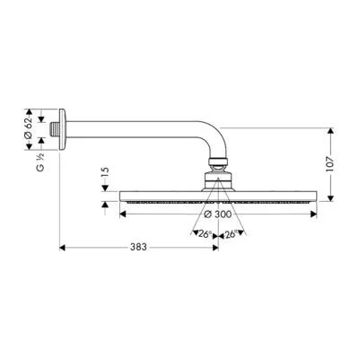 Верхний душ Raindance S 300 Air 1jet, держатель 390 мм, ½’ хром