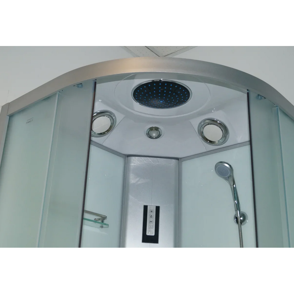 - Душевая кабина, высокий поддон сенсорный пульт Touch-Screen, РАДИО, полка, вентилятор,LED подсветка, верхний душ, ручной душ, спинной массаж, 6 форсунок, передние стекла матовые, задние стекла белые