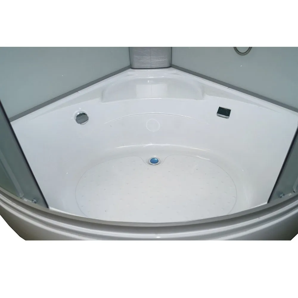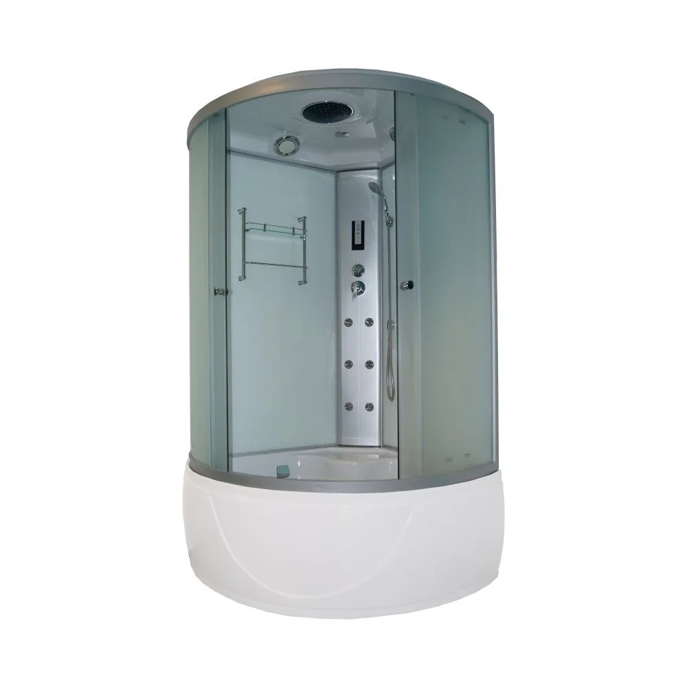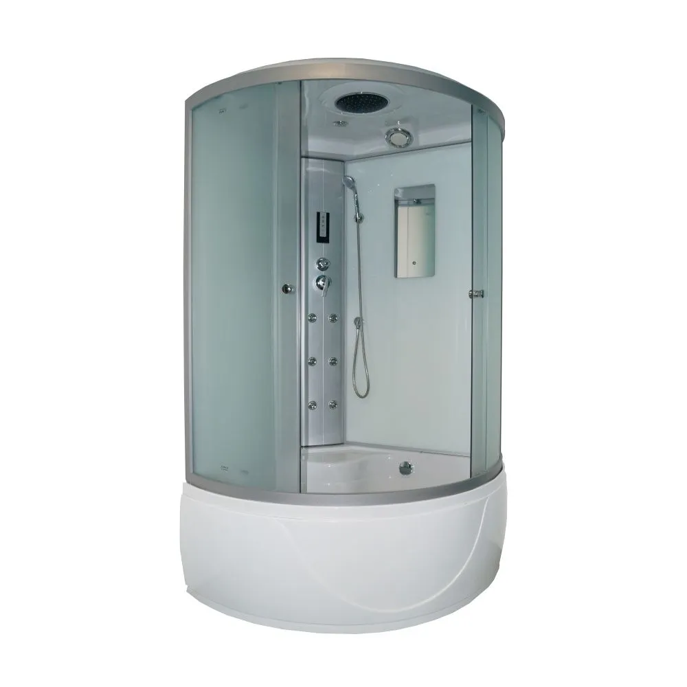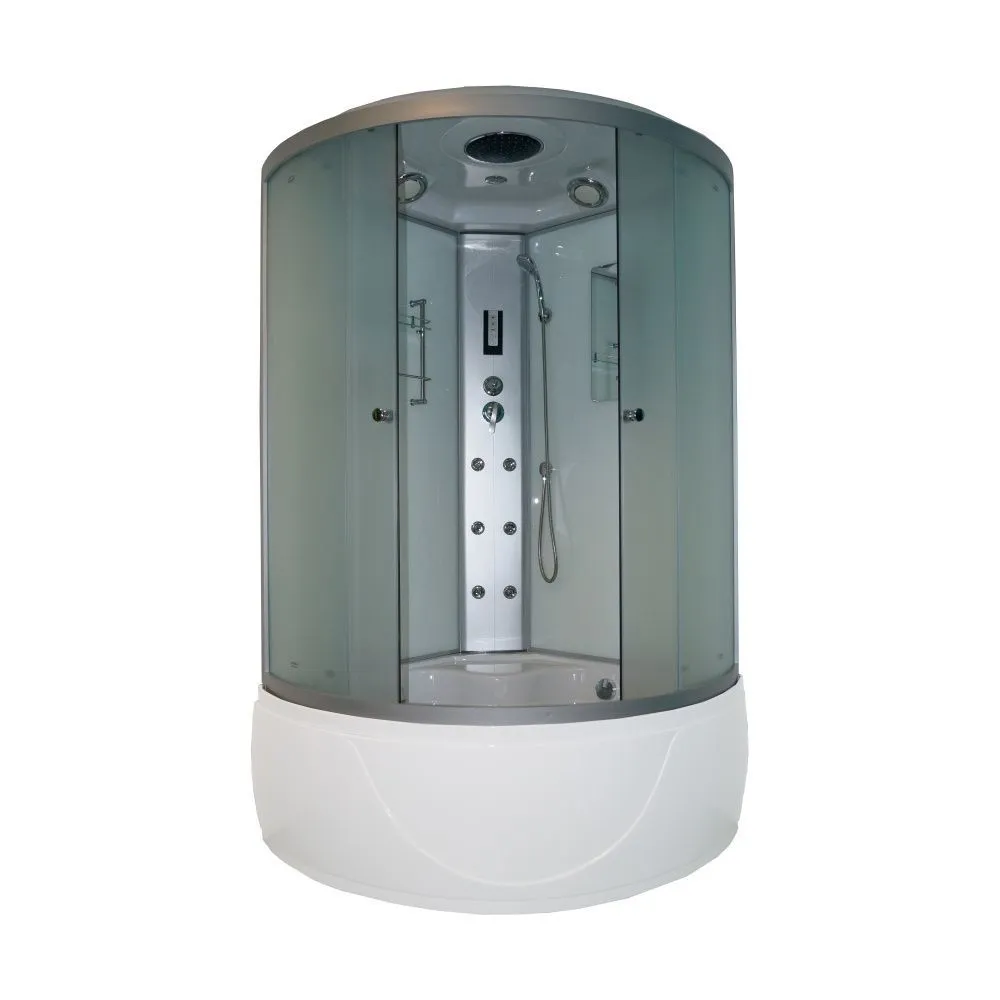 Душевая кабина, высокий поддон сенсорный пульт Touch-Screen, РАДИО,вентилятор, подсветка, полка, зеркало, верхний душ, ручной душ, спинной массаж 6 форсунок, передние стекла матовые, задние стекла белые.