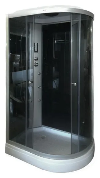 - Душевая кабина, низкий поддон, Сенсорный пульт Touch-Screen, РАДИО, вентилятор, подсветка, полка, верхний душ, ручной душ, спинной массаж, 6 форсунок, передние стекла тонированные, задние стекла черные.