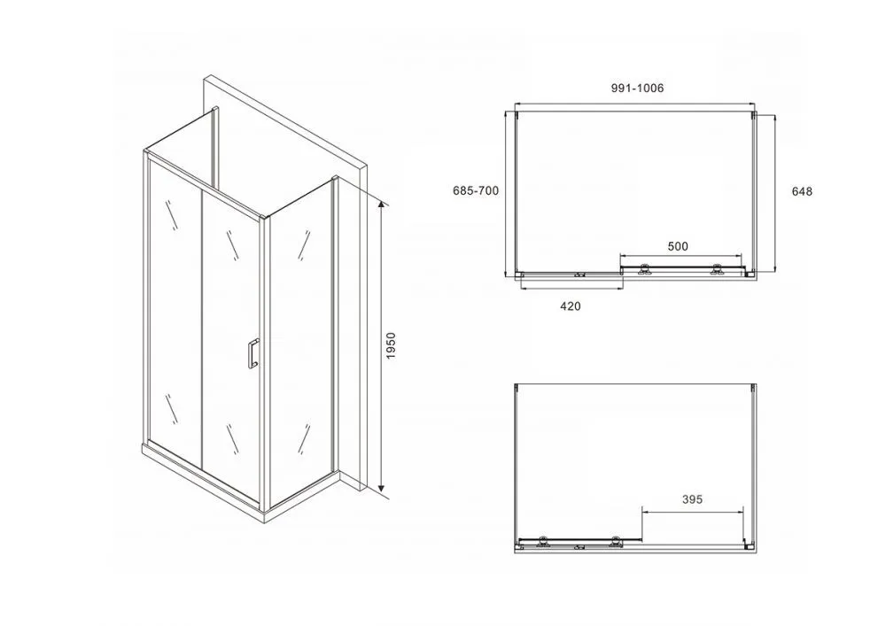 Душевой уголок ABBER Schwarzer Diamant AG30100B-S70B-S70B прозрачное/черный