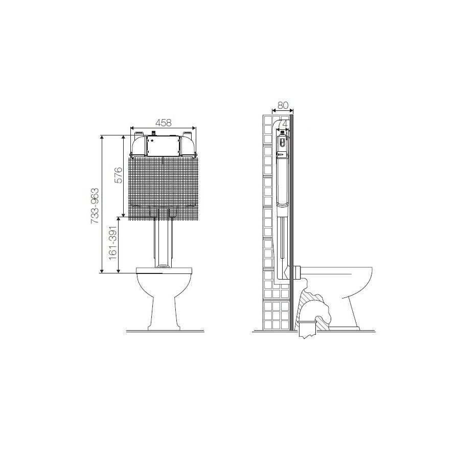 - Толщина бачка - 80 мм;