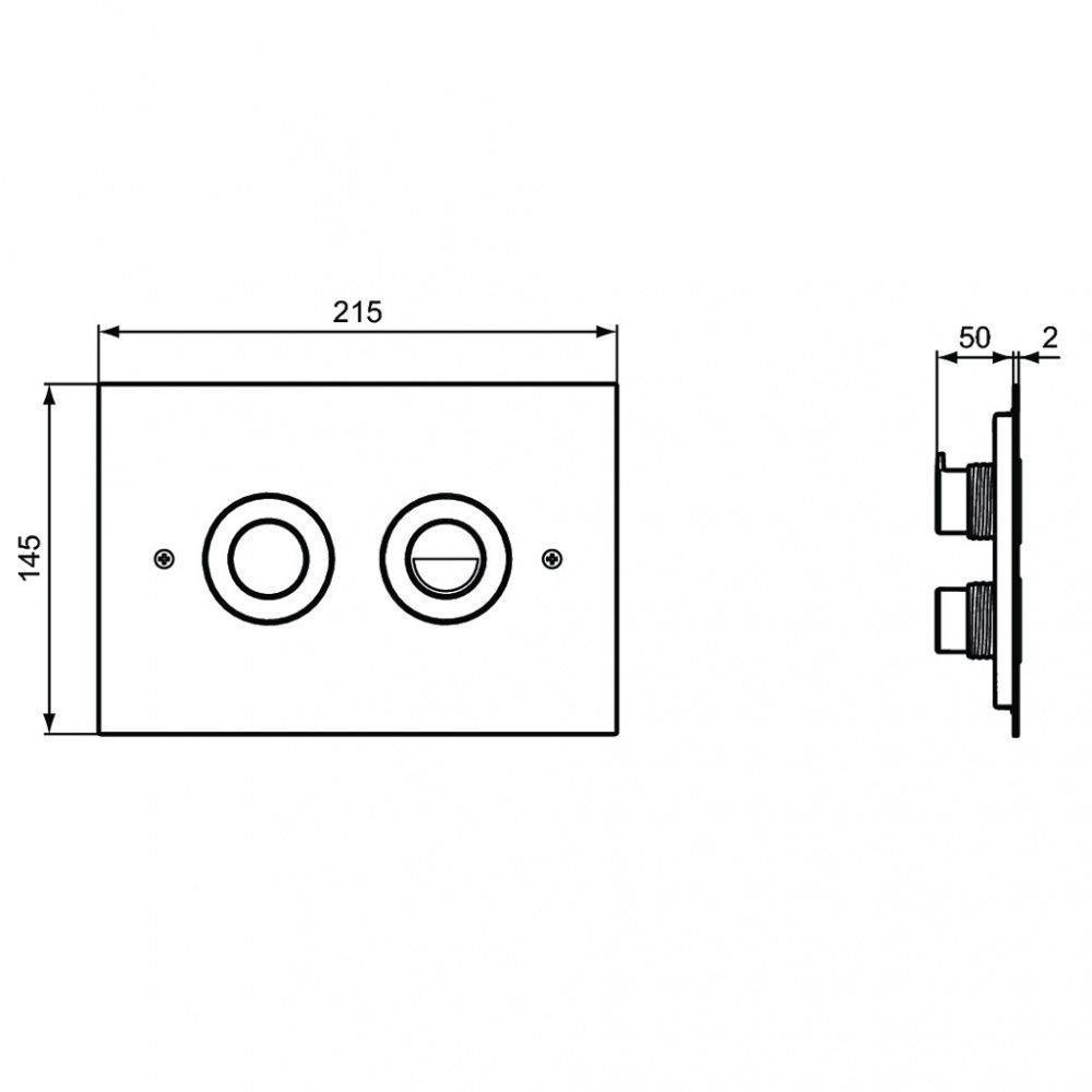 Антивандальная пневматическая панель смыва, двойной смыв, толщина 2 мм, матовый хром, нержавеющая сталь.