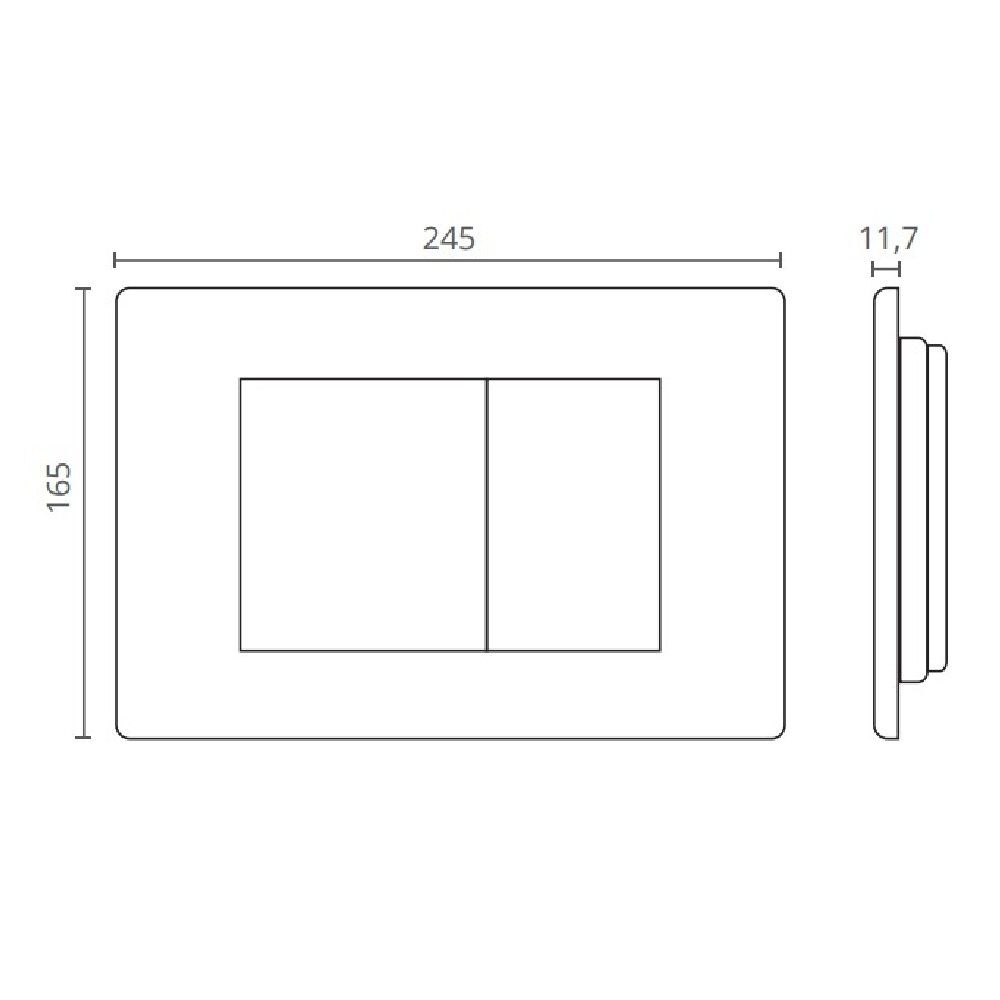 Изготовлена из нержавеющий стали, имеет две кнопки, отвечающие за экономичный и полный режимы смыва.
