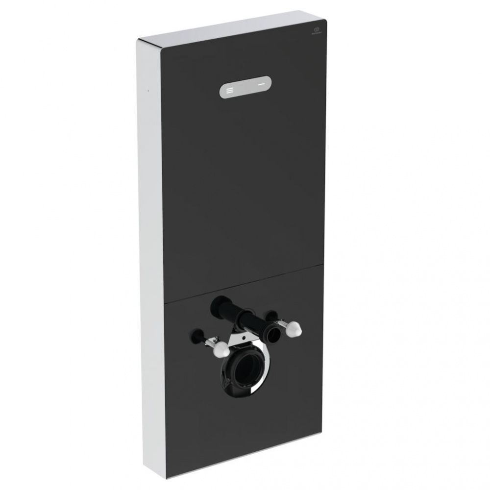 Модуль для монтажа подвесных унитазов с черной стеклянной фронтальной панелью.