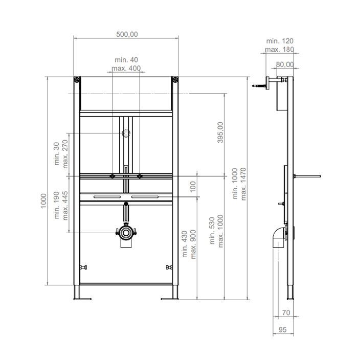 - Инсталляционная система для писсуара 1470х500х120/180 мм, с креплениями