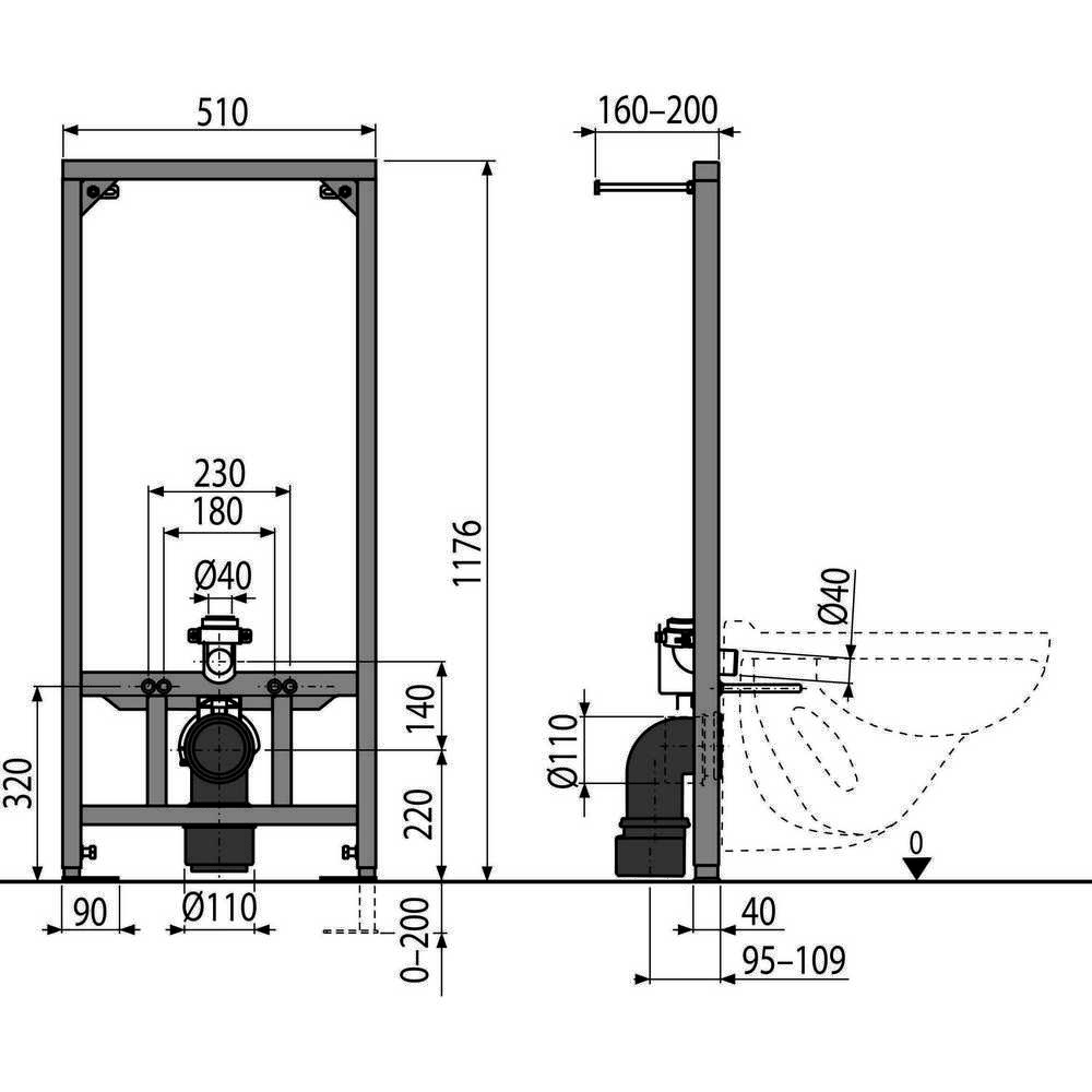 Система инсталляции для подвесного унитаза AlcaPlast A114/1200