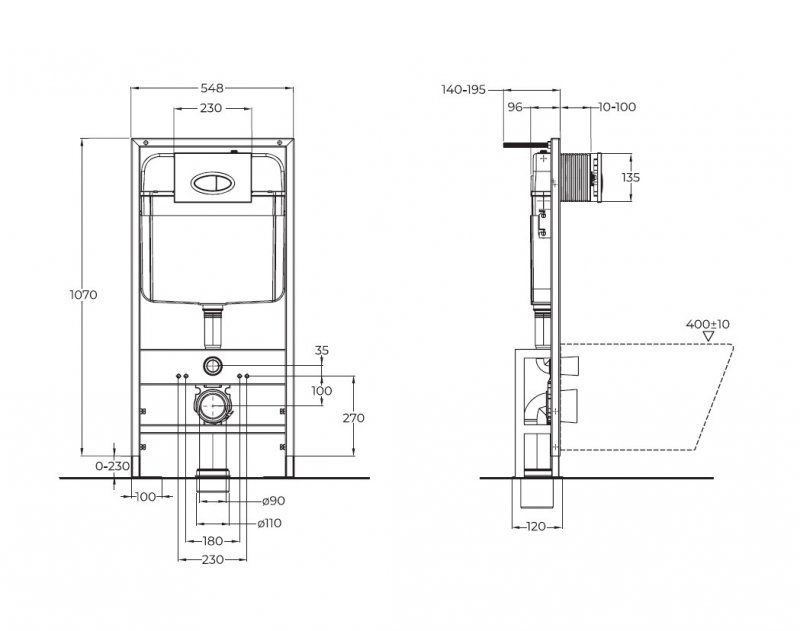 • Межосевое расстояние для крепежа: 180 и 230 мм