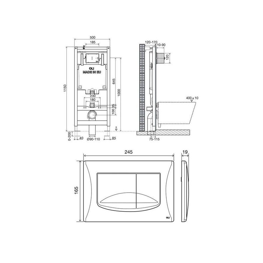 Система инсталляции для унитазов Oli 80 300572mRi00 с клавишей смыва