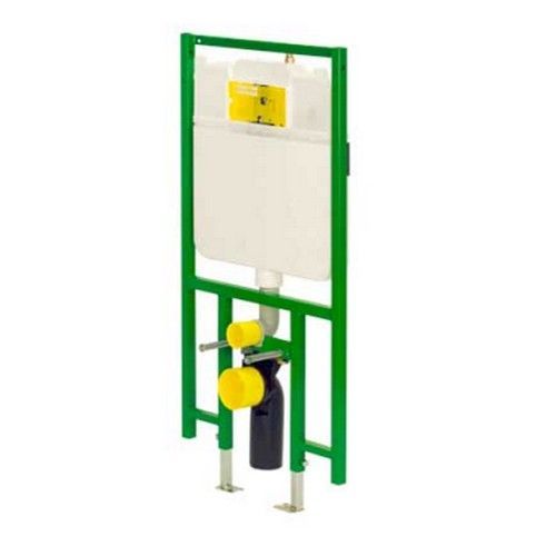 стальная рама с порошковым напылением, смывной бачок 1F (8см), соединительное колено для унитаза DN90 из PE, шумоизоляция, крепежный материал для модуля (к полу) и керамики, саморезы для фиксации на металлических каркасных конструкциях, выдвижные опоры
