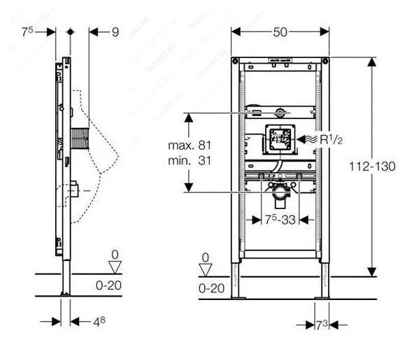 - Крепления для санфаянса с регулировкой по высоте и ширине