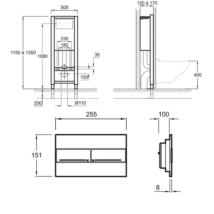 Система инсталляции Jacob Delafon E21928RU-CP с кнопкой смыва