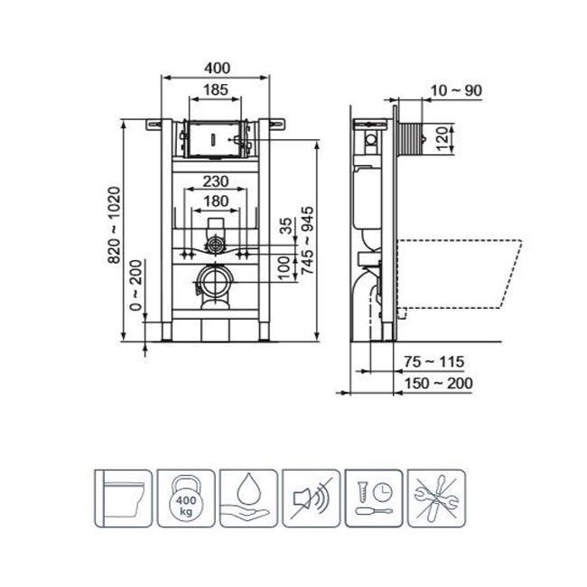 Встраиваемая инсталляция для монтажа подвесных унитазов.