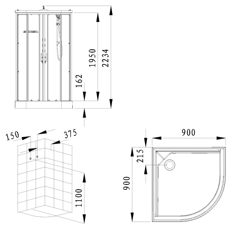 3 поворотные форсунки спинного массажа расположены на центральной панели