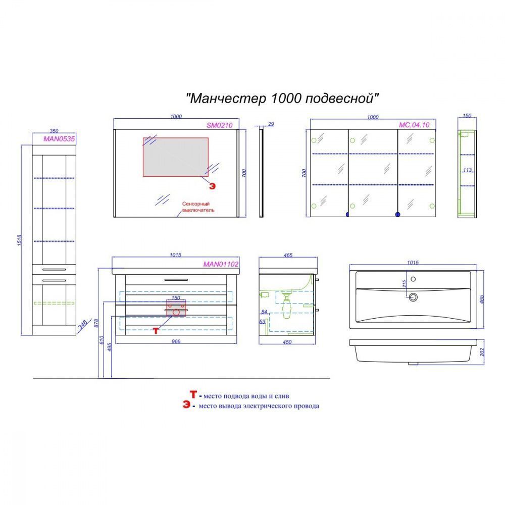 Тумба под раковину Aqwella Манчестер MAN01102 100 подвесная, белый