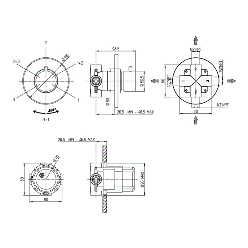 Встраиваемый дивертор Paini COX выполнен в самых актуальных трендах.