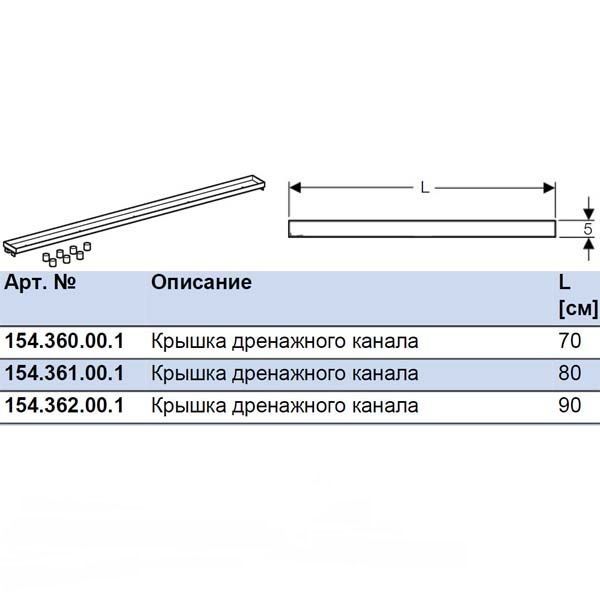 Крышка дренажного канала Geberit 154.362.00.1 90 см под плитку