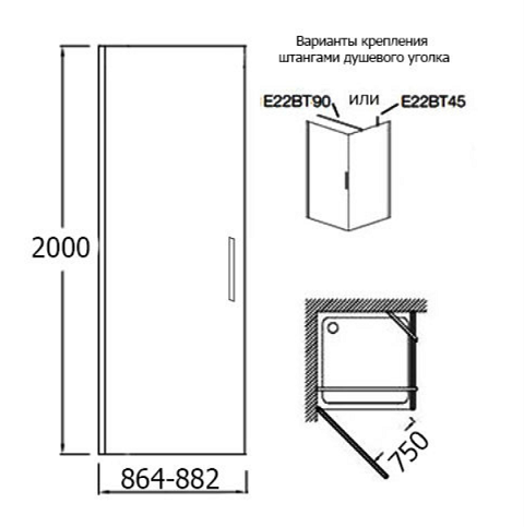 Горизонтальная штанга Jacob Delafon Contra E22BT90-GA применяется для фиксации боковой панели. Крепится под углом 90°, используется для дверей 80 и 90 см.