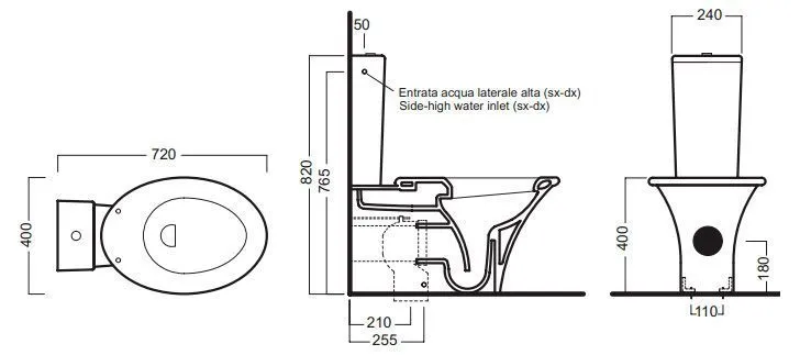 - Бачок (подвод воды снизу) и крышка-сидение приобретаются отдельно.