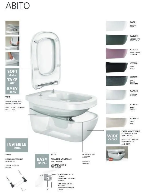- Должен комплектоваться сиденьем с механизмом плавного закрывания YXXF и быстро отсоединяющимися петлями,