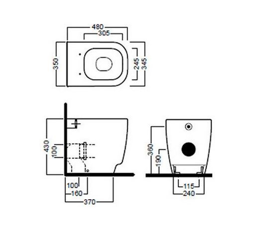 - Унитаз устанавливается на пол, под бачки скрытого монтажа и устройства смыва под давлением,
