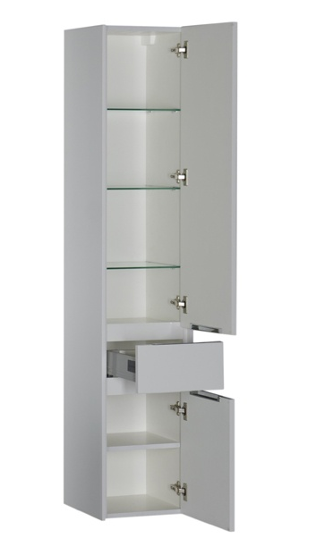 Пенал Акванет Латина — предложение для тех, кто решил создать ванную комнату в стиле «модерн». Вместительные отделения выдвижных ящиков и полок за распашными дверцами пенала сокроют в себе белье и полотенца. Это значит, что отныне необходимые для ежедневной гигиены принадлежности будут всегда «под рукой». Ящики новых коллекций мебели Aquanet снабжены доводчиками плавного закрывания. Белое глянцевое покрытие «Латины» соответствует представлениям о чистоте и здоровье и гармонирует с белизной ванны, кабины или душевого уголка в ванной комнате.