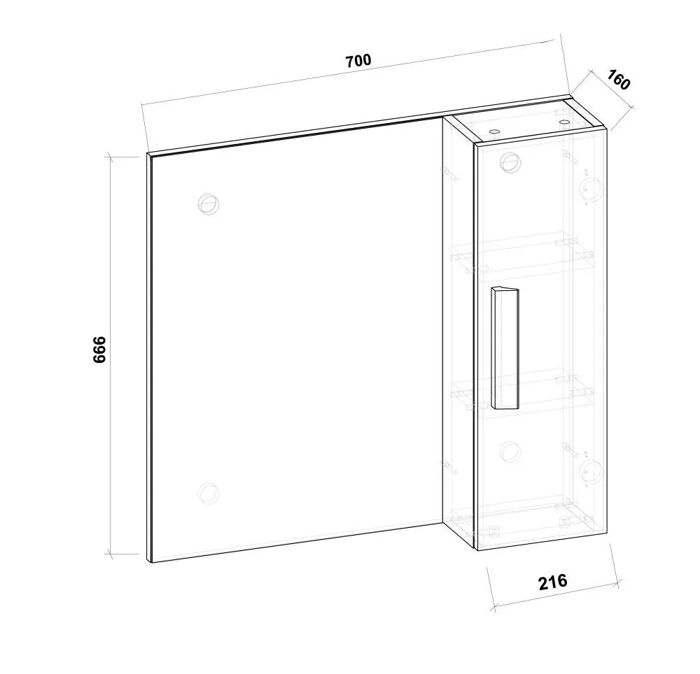 Шкаф-зеркало имеет петли с доводчиками, что обеспечивает плавное и бесшумное закрывание дверцы. Внутренние полочки также выполнены из ЛДСП.