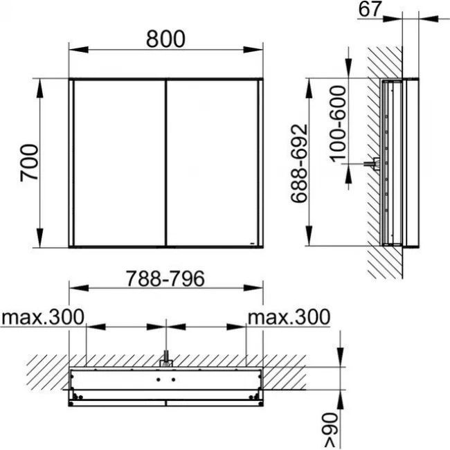 Шкаф-зеркало Keuco Royal Match 12812171301 80х70