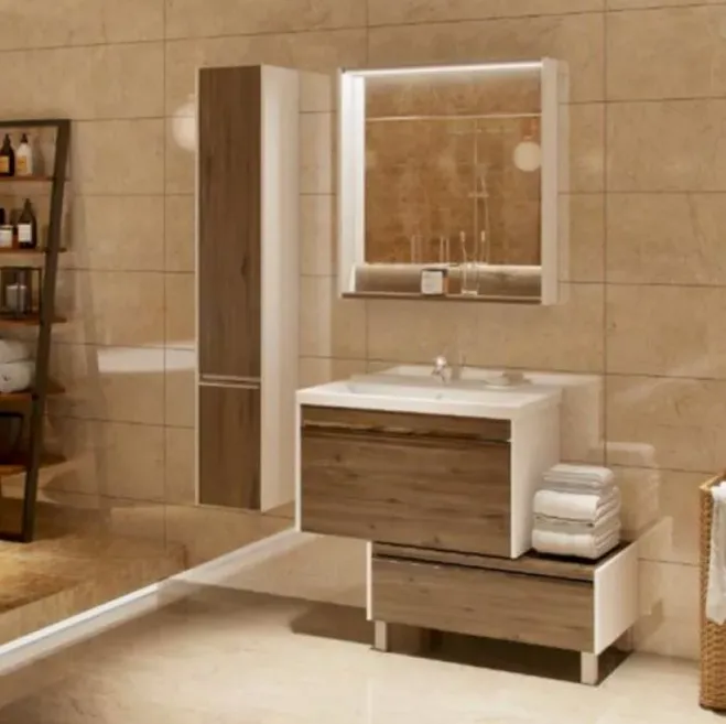 Коллекция выполнена в двух популярных размерах 600 мм и 800 мм. В размере 600 мм к тумбе предлагается зеркальный шкафчик, а в размере 800 мм - зеркало.