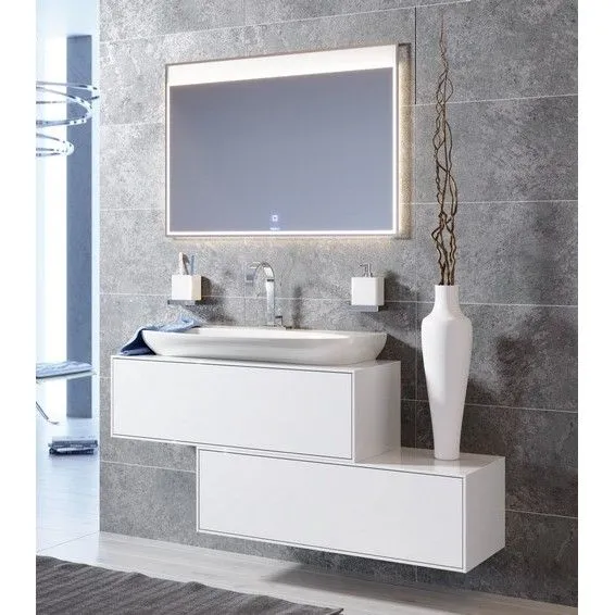 - Тумба оборудована ящиком полного выдвижения LegraBox с инновационной системой Tip-On Blumotio