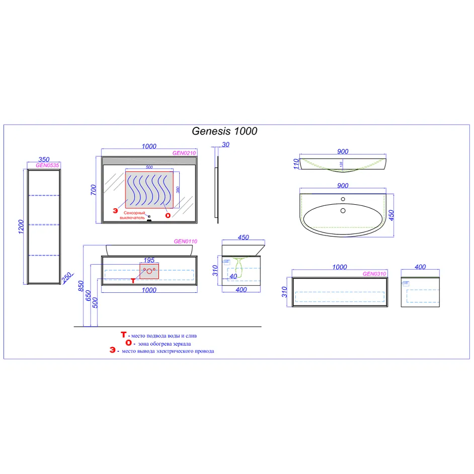 Тумба Aqwella Genesis GEN0310W 100 дополнительная, белый глянцевый