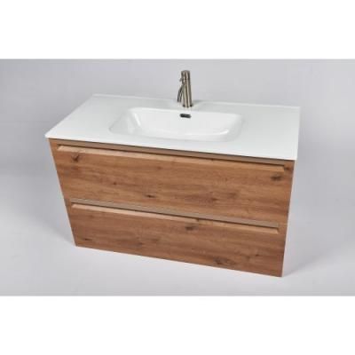 Тумба с раковиной 810*460 мм (дуб | раковина белая). С двумя выдвижными ящиками с плавным закрытием. Ручки интегрированы в фасад. Отделка - Rovere Castagno матовый. Раковина из фарфора KONA 80.