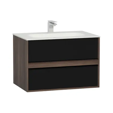 Тумба с раковиной VitrA Metropole 58181 80 сливовое дерево, фасад черное акриловое стекло