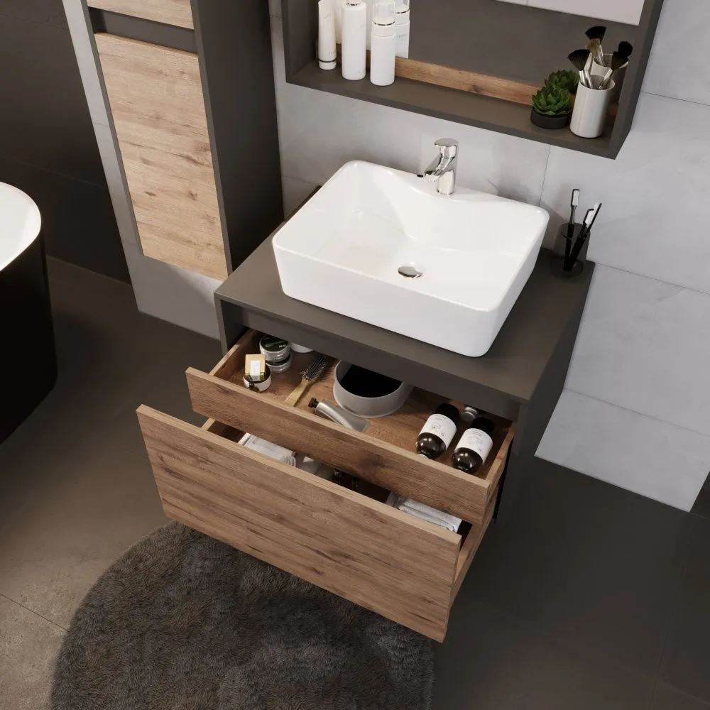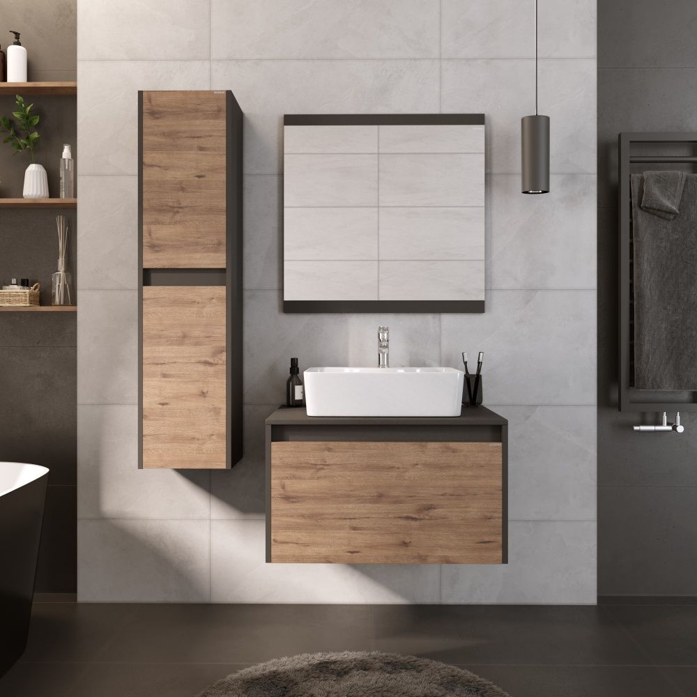 - Корпус выполнен из влагостойкого ЛДСП в цвете графит.