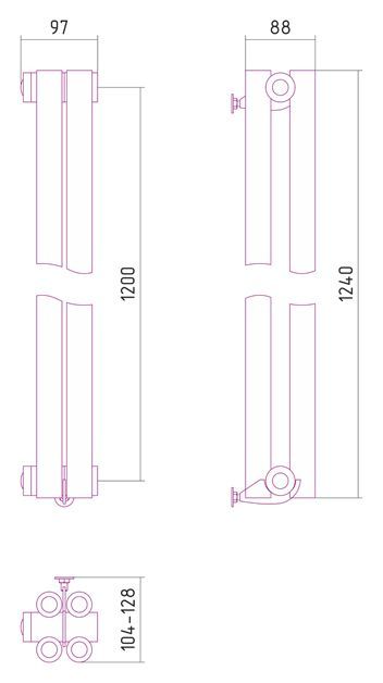 - Внешние габариты (высота х ширина х глубина) (мм)1240х97х104-128