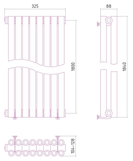 - Внешние габариты (высота х ширина х глубина) (мм)1840х325х104-128