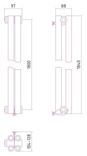 - Внешние габариты (высота х ширина х глубина) (мм)1840х97х104-128