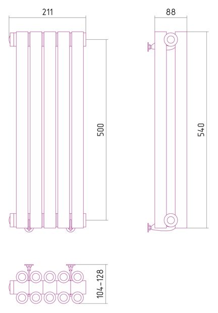 - Внешние габариты (высота х ширина х глубина) (мм)540х211х104-128