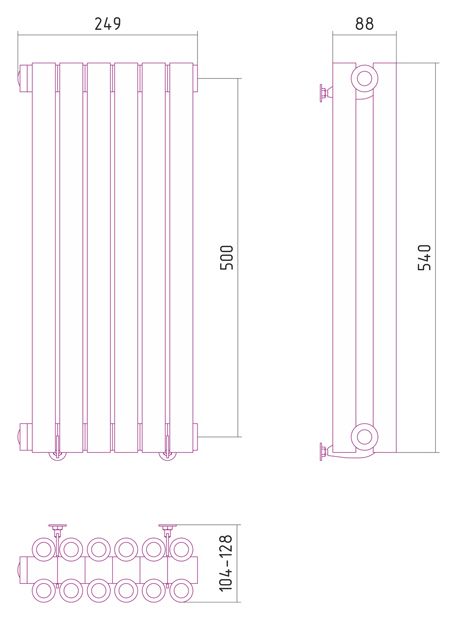 - Внешние габариты (высота х ширина х глубина) (мм)540х249х104-128