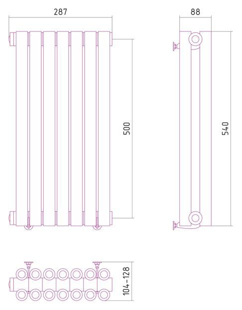 - Внешние габариты (высота х ширина х глубина) (мм)540х287х104-128