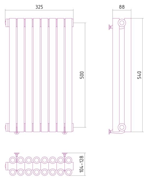 - Внешние габариты (высота х ширина х глубина) (мм)540х325х104-128