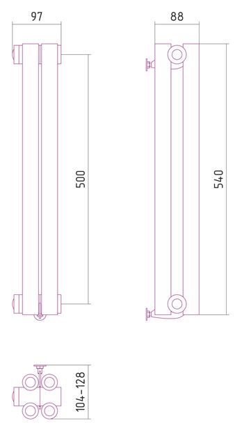 - Внешние габариты (высота х ширина х глубина) (мм)540х97х104-128