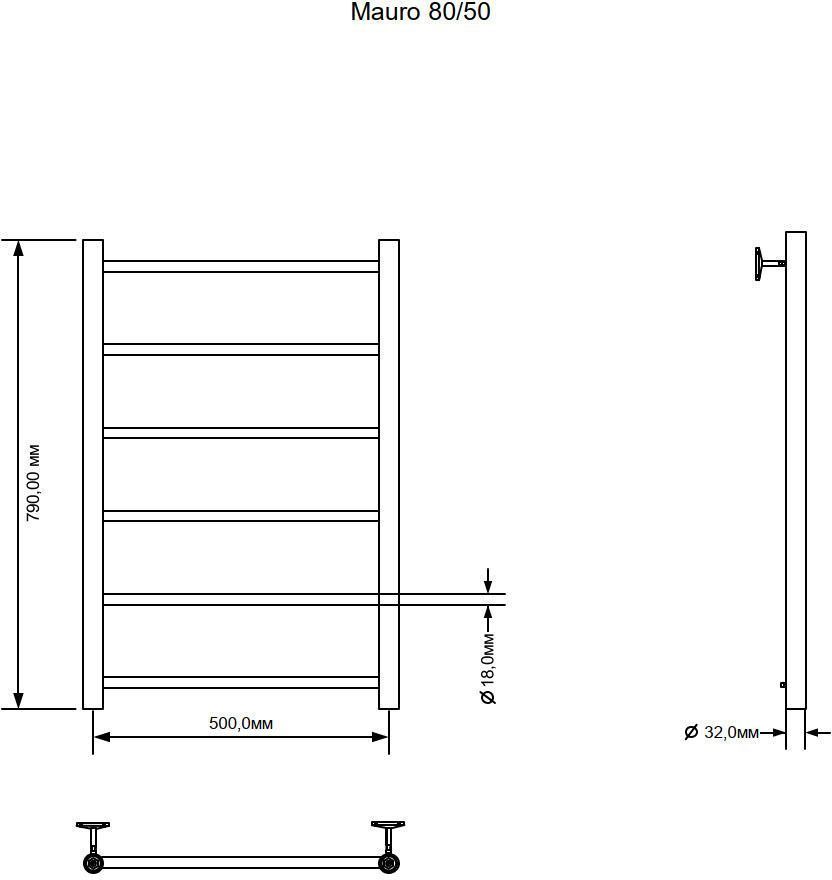 Полотенцесушитель водяной Aquanet Mauro 800x500 хром